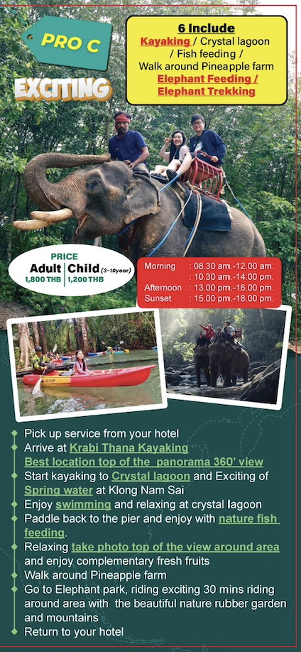 Package C : 6 Include (EXCITING) Kayak Krabi Tour & Elephant Trekking Adventure